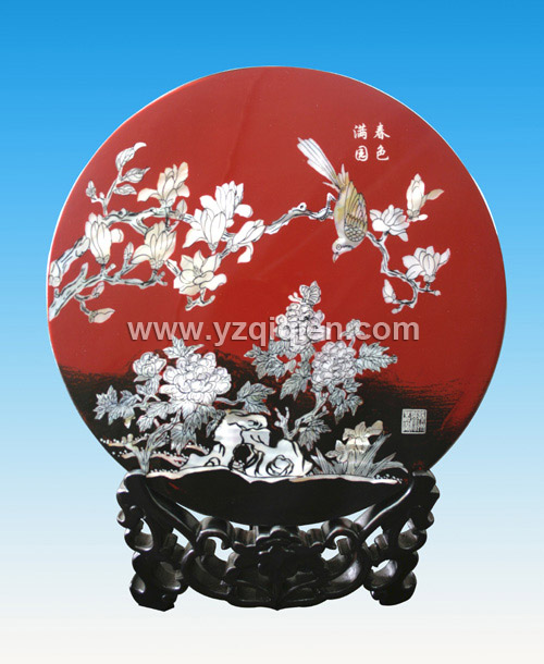 Name: Mother-of-pearl Table Screen "Spring Over the Garden" Basic Color: Red Size: ï¿ 28cm